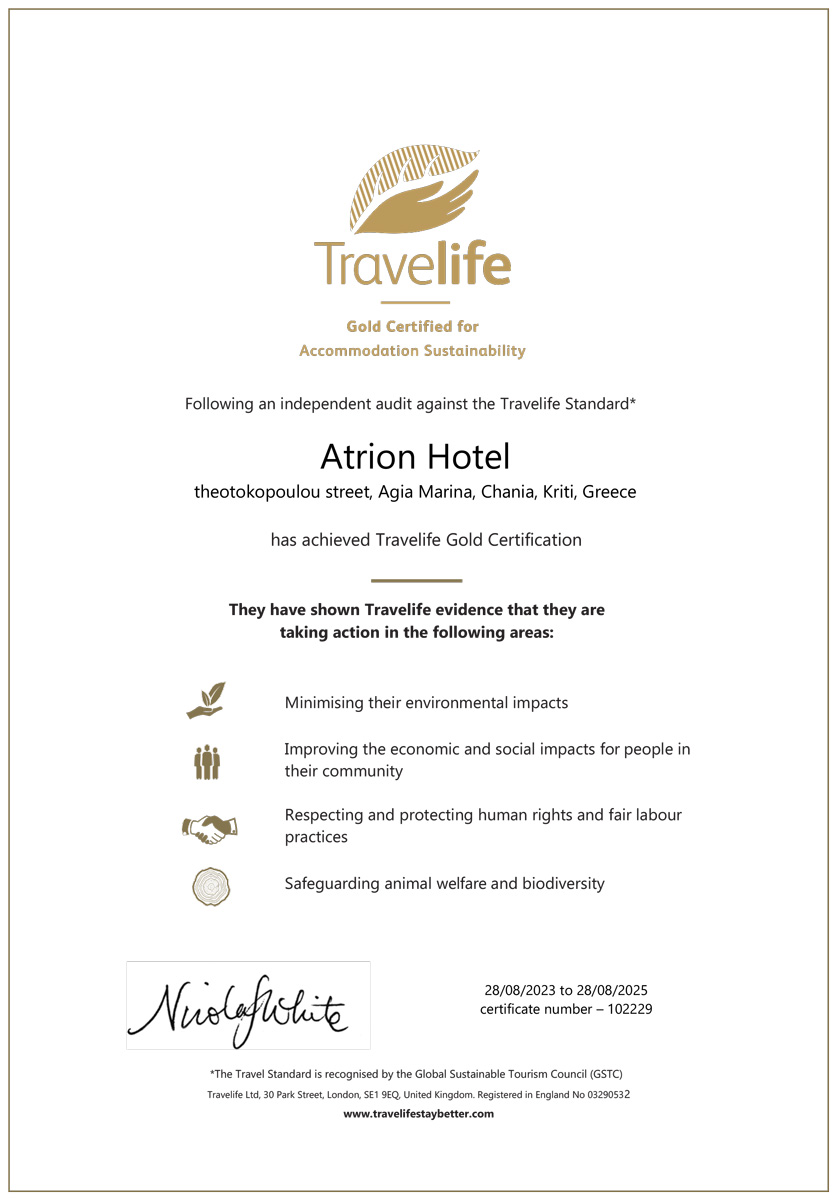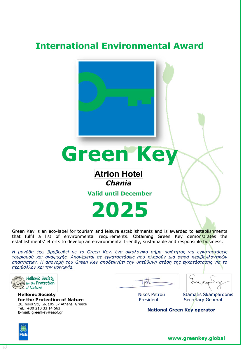 Η βιωσιμότητα είναι μια από τις σημαντικότερες προκλήσεις που αντιμετωπίζει ο κόσμος σήμερα και το Atrion Hotel Resort έχει δεσμευτεί να κινηθεί προς αυτή την κατεύθυνση.
